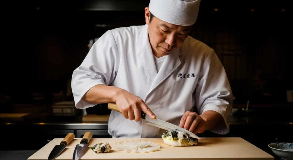 Agora vem a parte mais louca. Mesmo sendo venenoso, tem gente que come baiacu. No Japão, ele é um prato chique. Lá eles chamam de fugu.